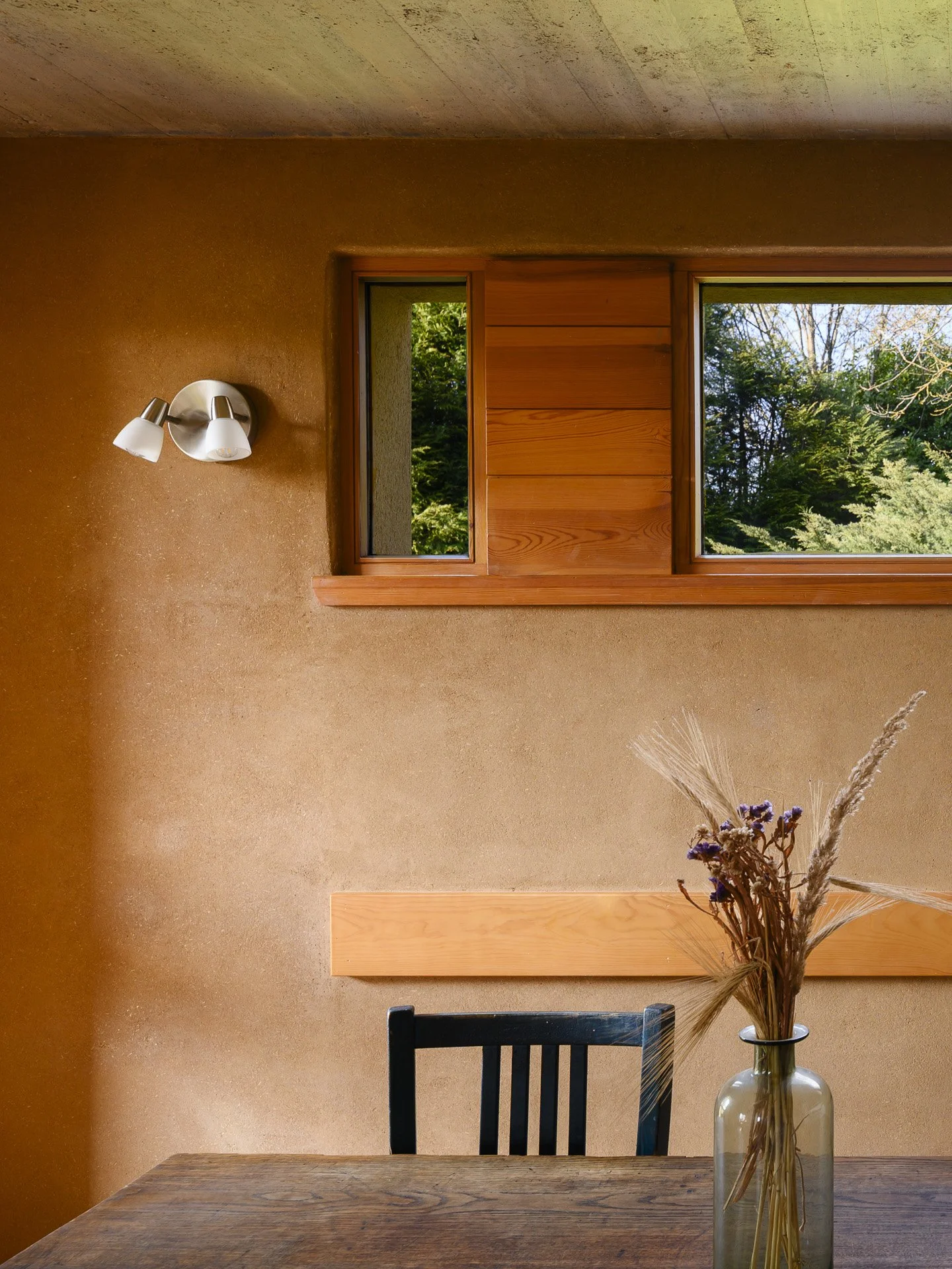 Mélange sur mesure pour apporter matière et chaleur à cette salle-à-manger. La matière est vivante et évolue selon l’heure de la journée.